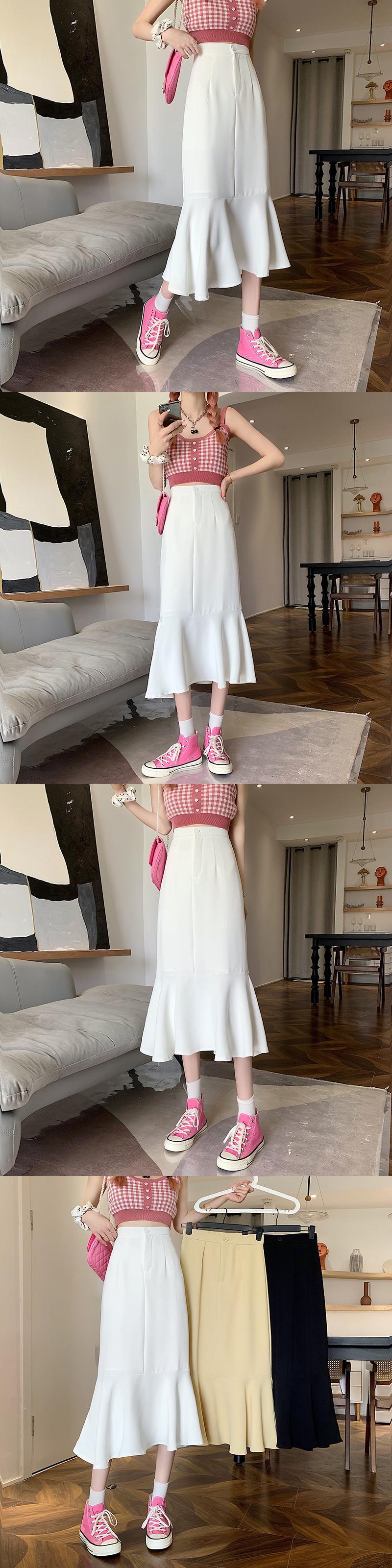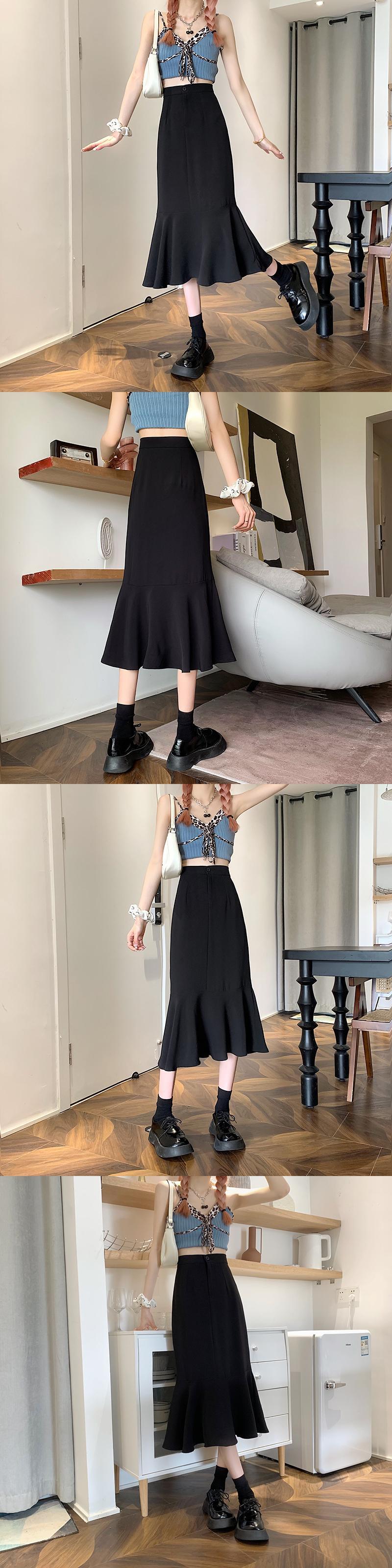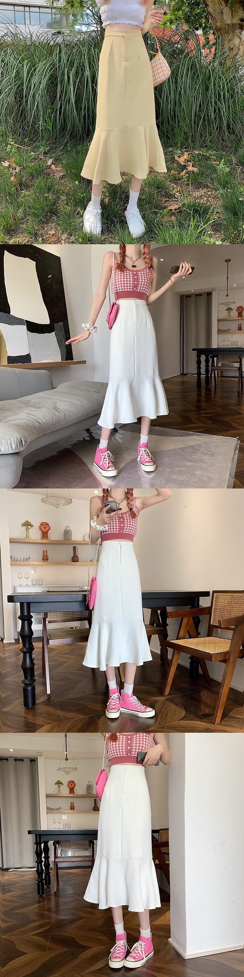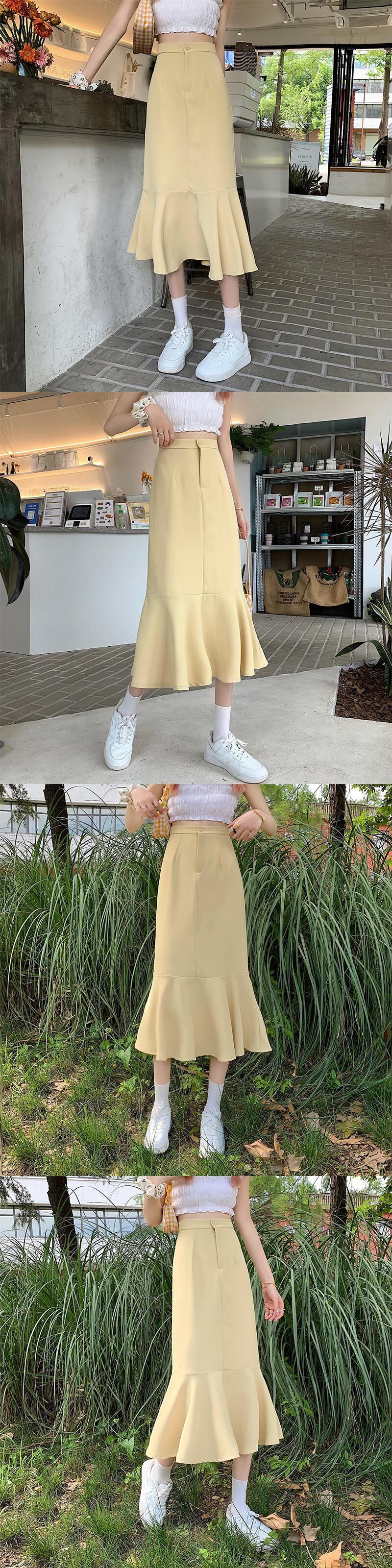 フリルスカート2021年夏新作ハイウエストスリムミドル丈気質Aラインスカートフィッシュテールスカート婦人服 ハイウェスト サマー 夏物 可可里92749273972