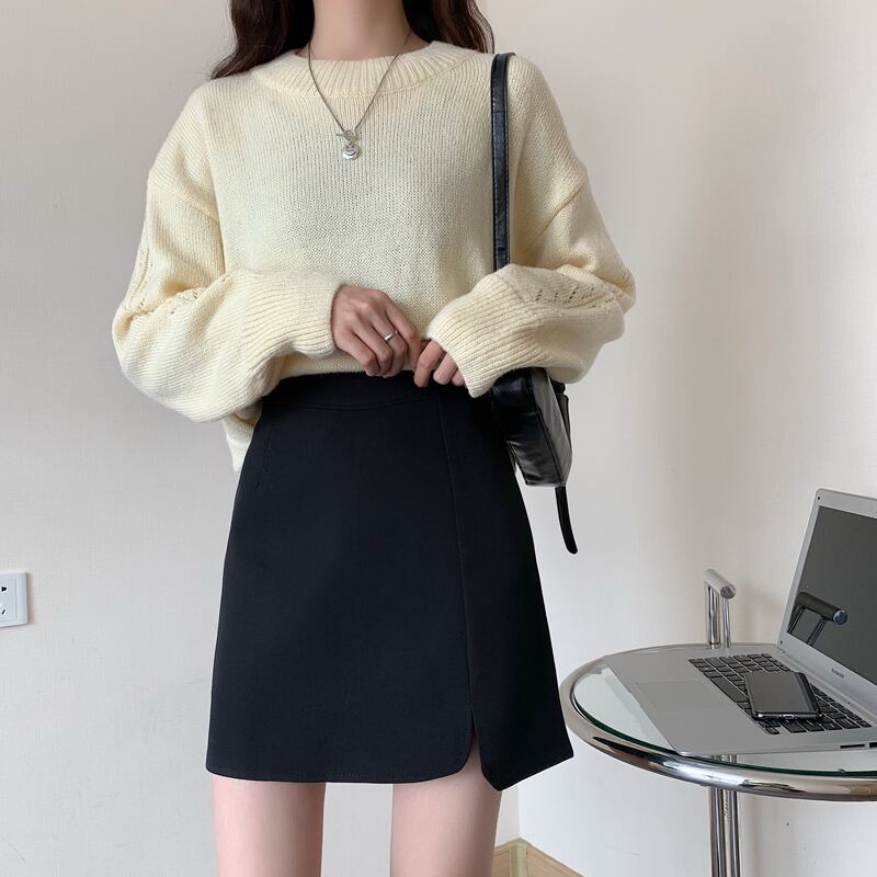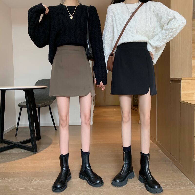 ハーフレングススカート女性2021年秋新作ハイウエストスリムイレギュラースプリットスカートニッチAラインスカートバッグヒップスカート オータム 秋物 可可里15464348313