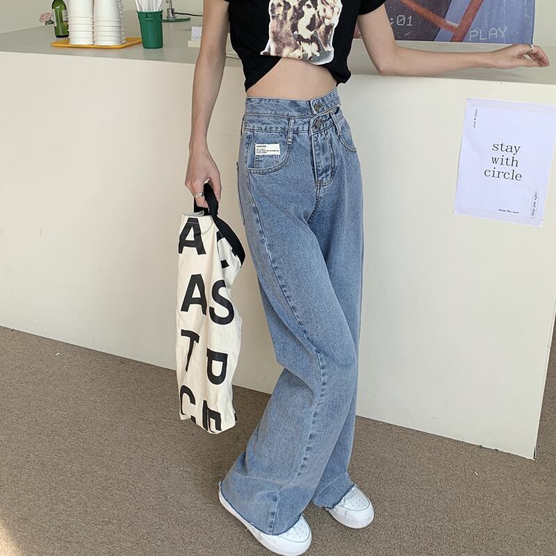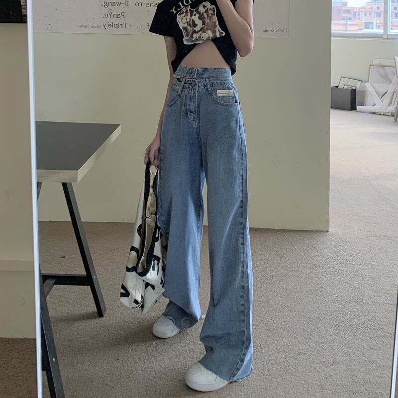 ストレートハイウエストジーンズレディースサマー薄切片ワイドレッグモップパンツ2021新デザイン官能カジュアルパンツ ハイウェスト 夏物 ワイドパンツ 可可里55811630670