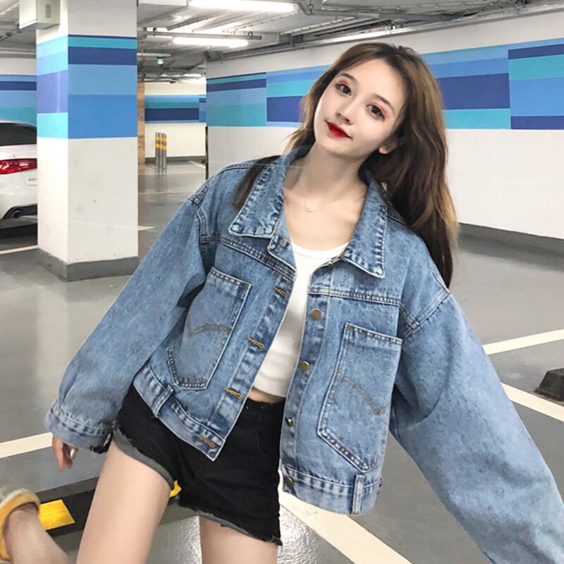 2021年春秋新作レトロソルトデザインセンスニッチルーズショートバットスリーブ長袖デニムジャケットレディース ロング スプリング 春物 オータム 秋物 可可里7910467084