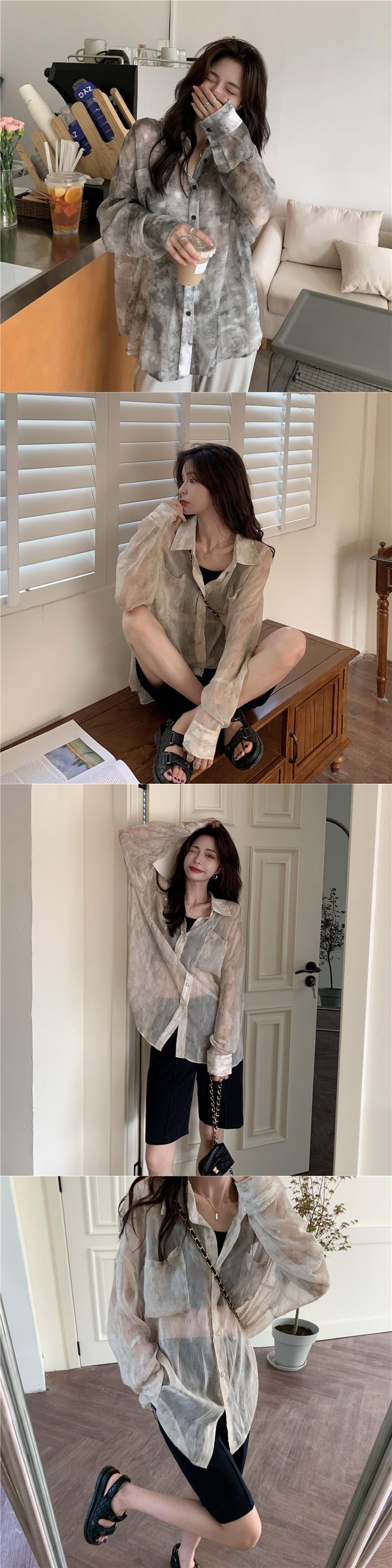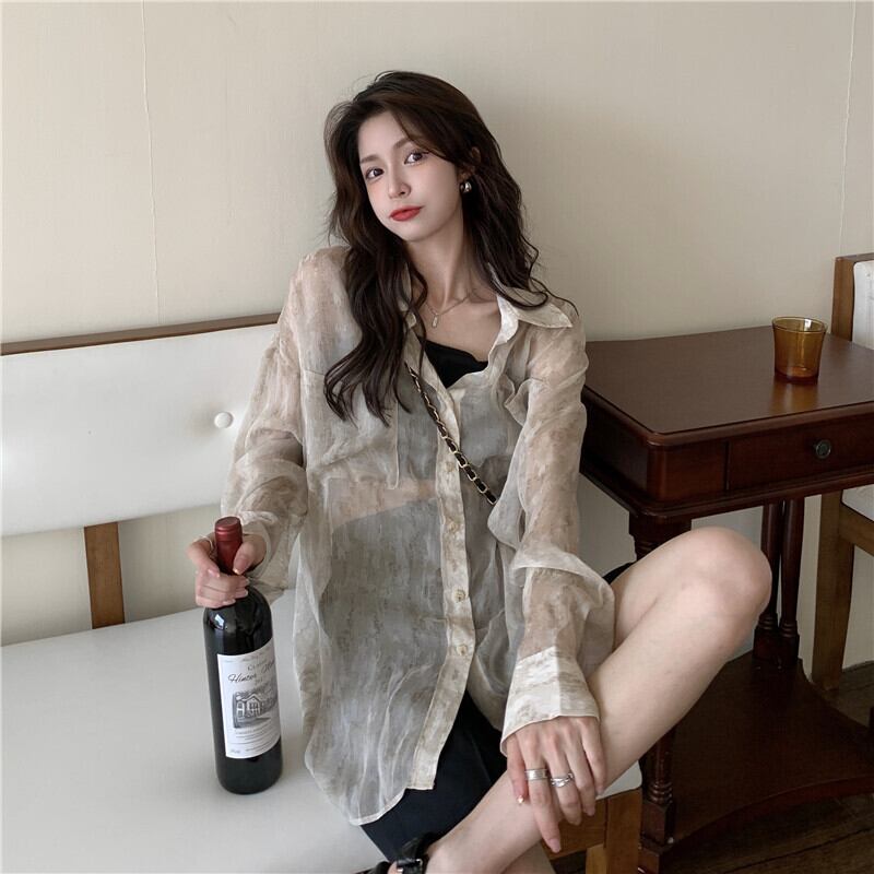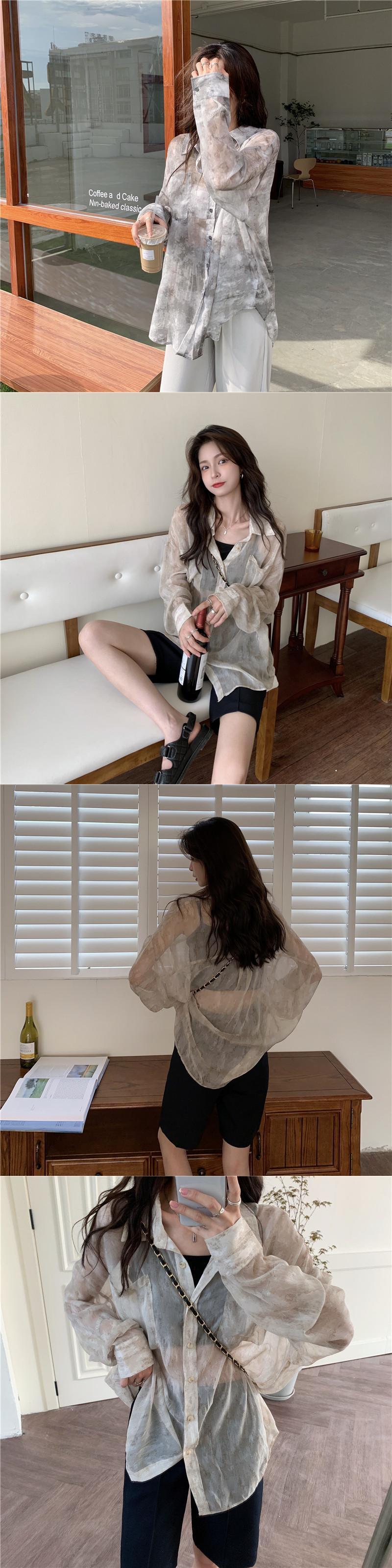 絞り染めの日焼け止めシャツ夏バージョン2021新しいルーズミドル丈薄いエアコンシャツ長袖シャツシャツ女性 ロング サマー 夏物 可可里32362403788