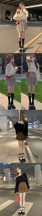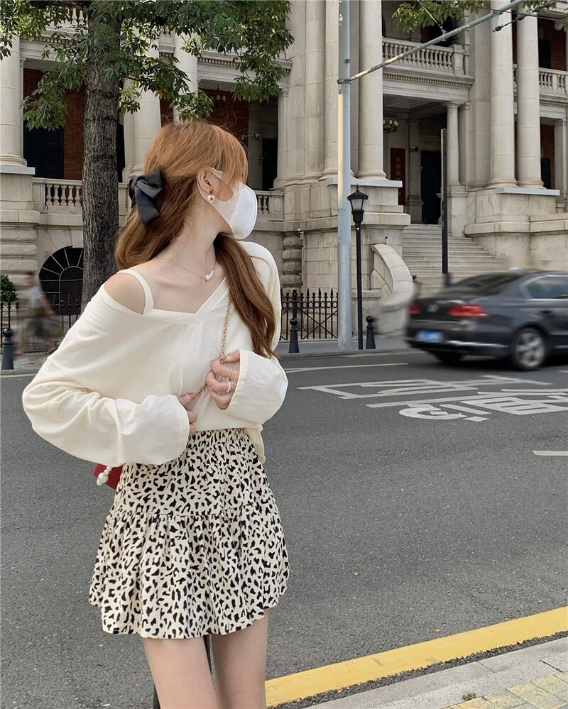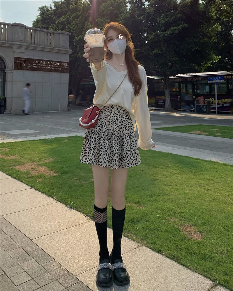 色:コーヒーカラーヒョウスカート,ホワイトヒョウスカート,アプリコット長袖,黒の長袖