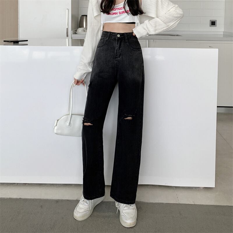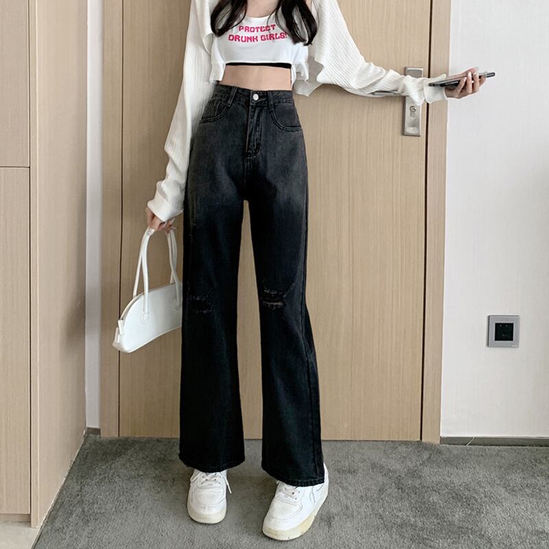 ジーンズレディース2021年秋スタイル破れたオールドパンツウエストスモールパンツ人気パンツワイドレッグパンツパンツトレンド ワイドパンツ 可可里14142319422