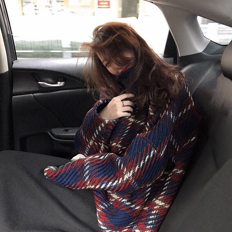 2021年秋新しいルーズワイルドレトロヒットカラーチェック柄年齢を減らすウエスタンスタイルのフード付き長袖セータートップ婦人服 ロング オータム 秋物 可可里86625348234