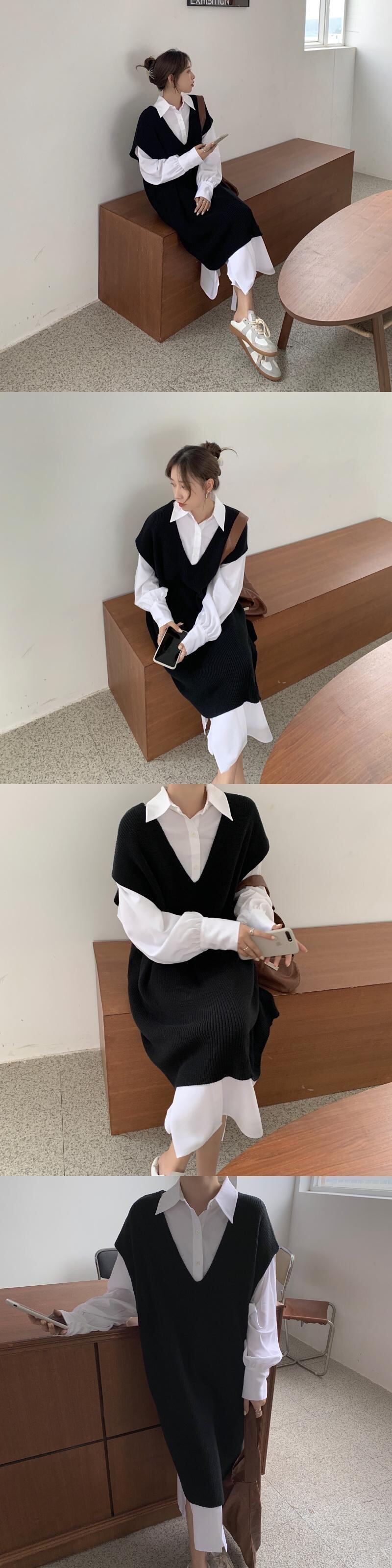 色:青いシャツスカート,白いシャツスカート,白いベスト,黒のベスト