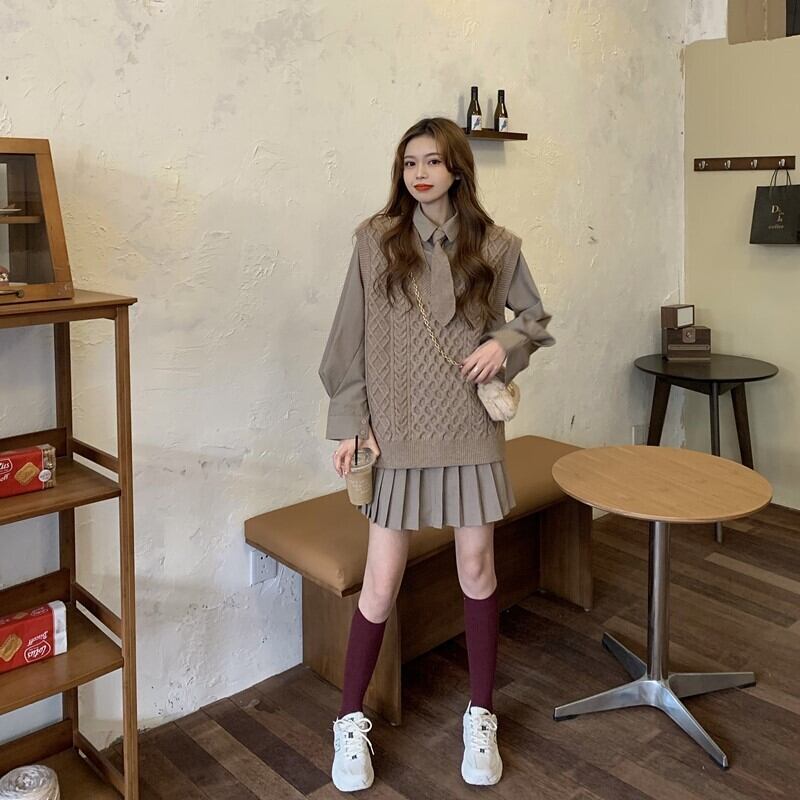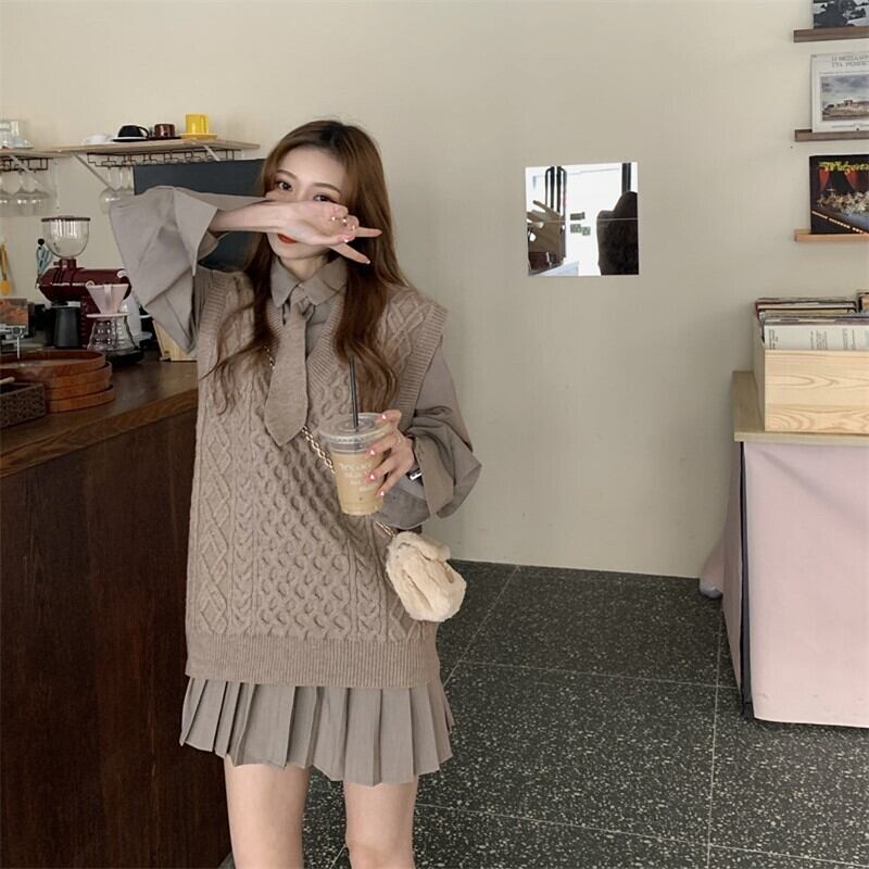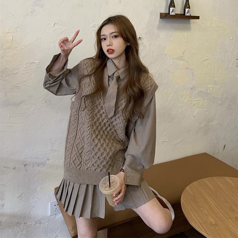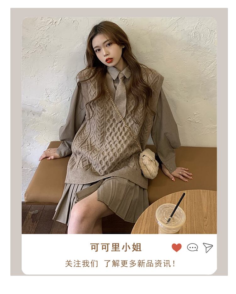 Vネックツイストニットセーター2021年秋新しいレトロな香港フレーバー緩い怠惰な風年齢を減らすベストベスト婦人服 オータム 秋物 可可里60130007130