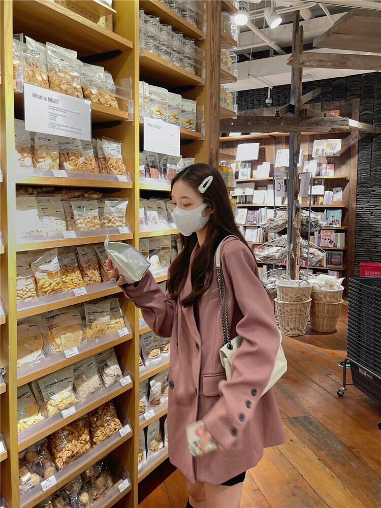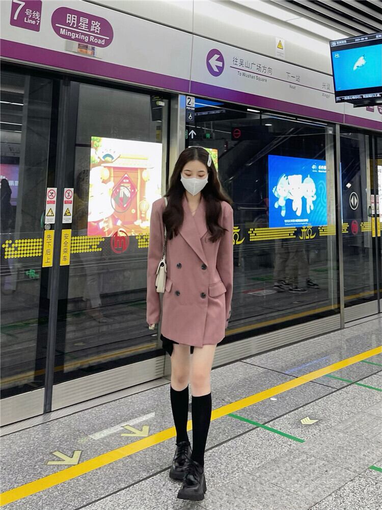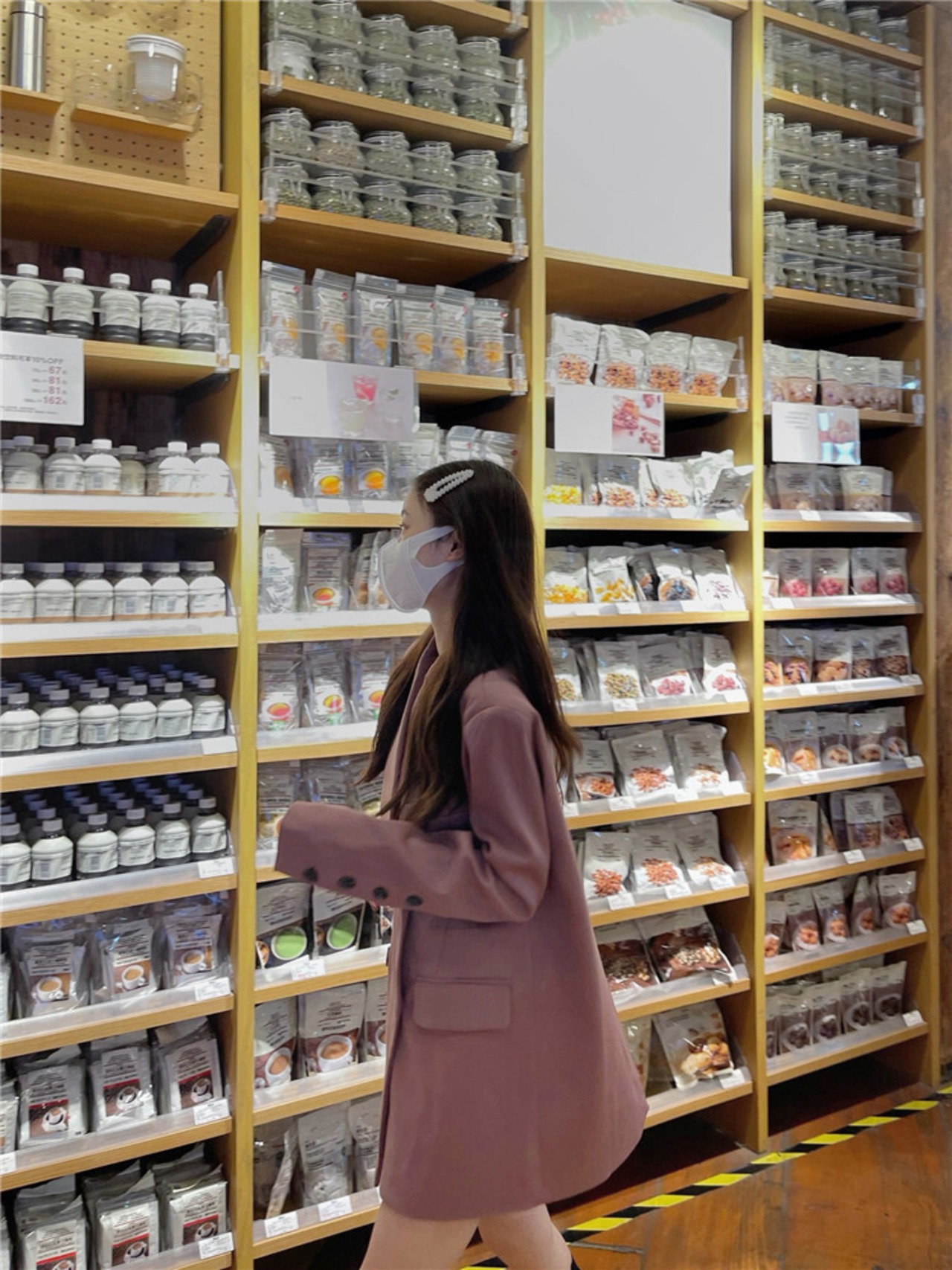 2021年秋ニュースタイルレトロブリティッシュスタイルルーズミドル丈スモールマンフライドストリートカジュアル長袖スーツジャケットレディース ロング オータム 秋物 可可里7271328654