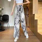 ワイドレッグパンツサマーウィメンズシンセクション2021新しい絞り染めヒョウ柄パンツハイウエストドレープローズフライドストリートカジュアルパンツ ハイウェスト 夏物 ワイドパンツ 可可里19066481779