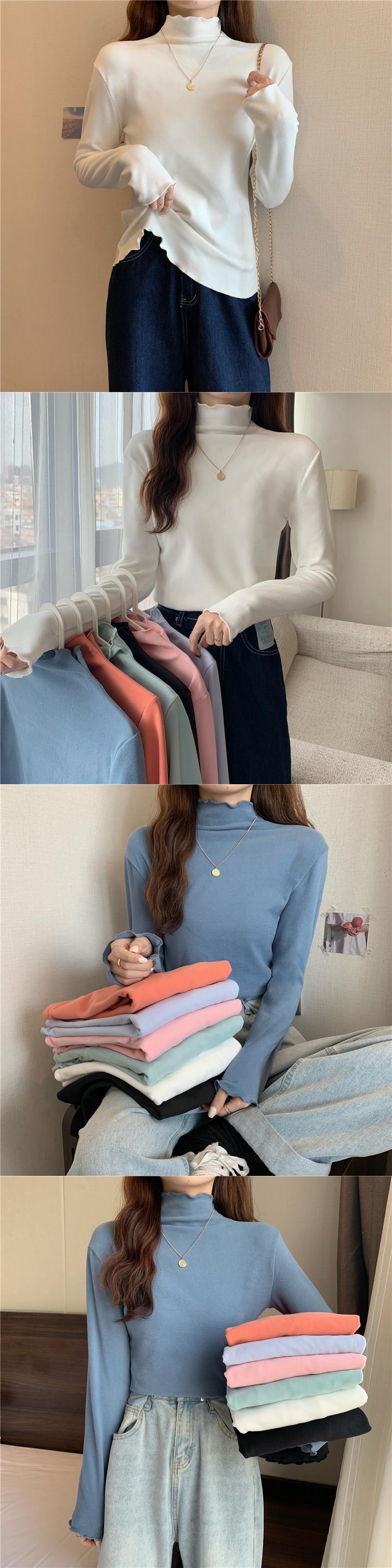 ハーフハイネックボトミングTシャツ秋バージョン2021新しいスタイルのベルベットは白い長袖ブラウスの女性と暖かさを厚くしました ロング ホワイト オータム 秋物 可可里24464048199