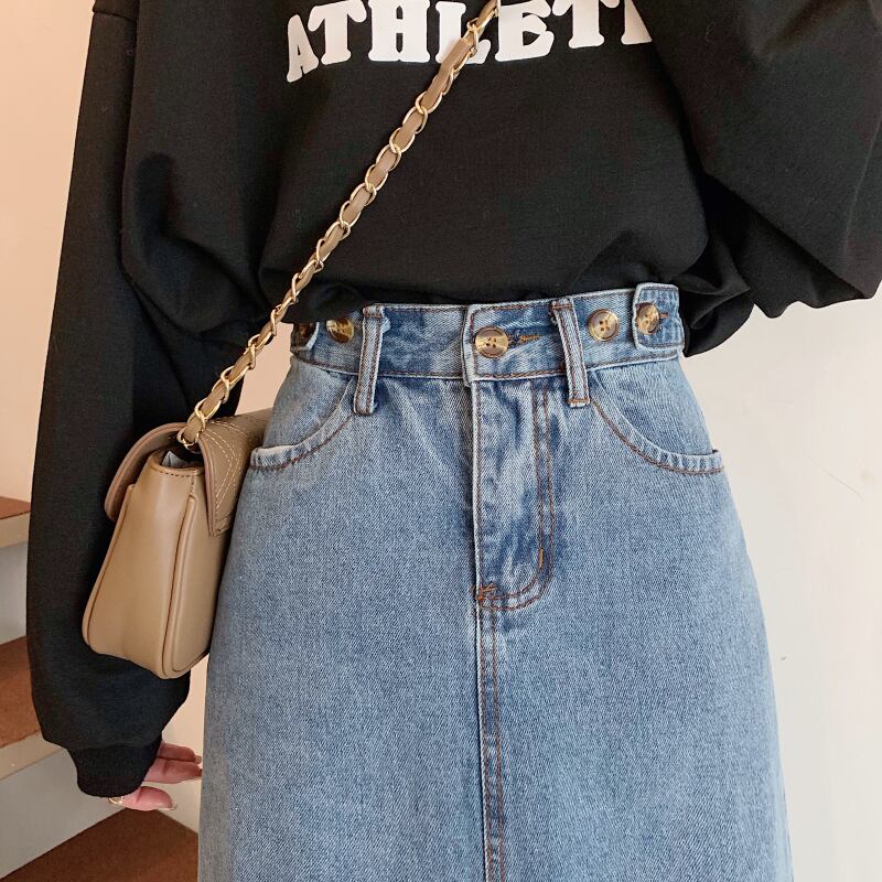 デニムスカートスカートメスミドル丈スカート2021新春秋ハイウエストAラインスカートスモールレトロ ハイウェスト スプリング 春物 オータム 秋物 可可里9324598988