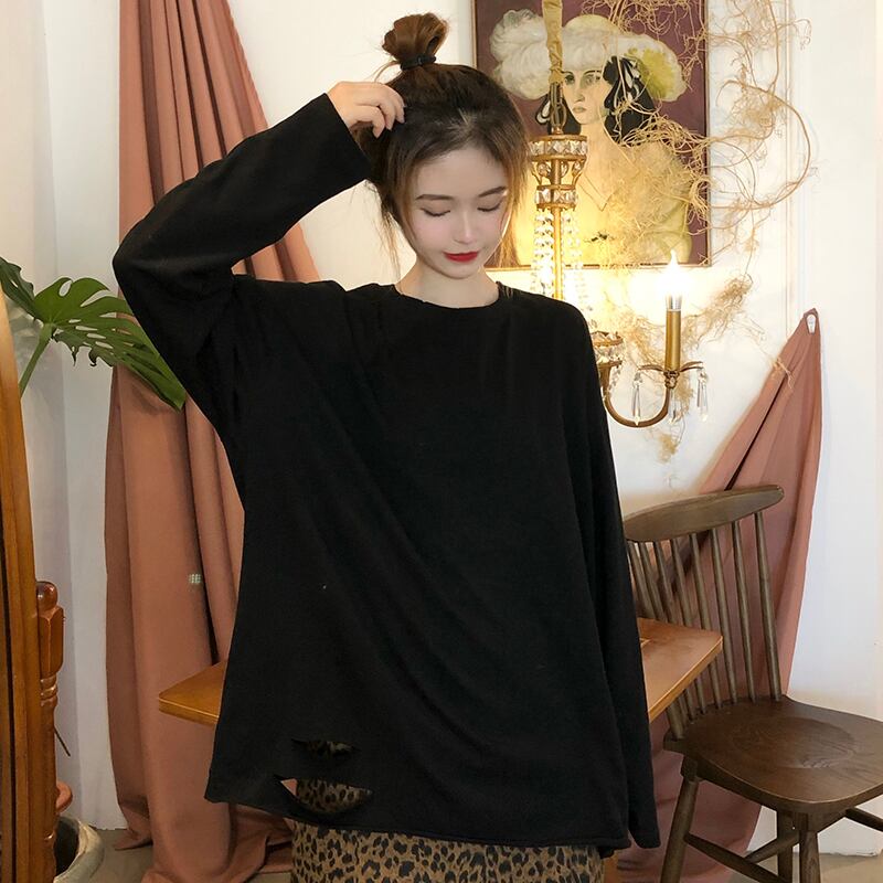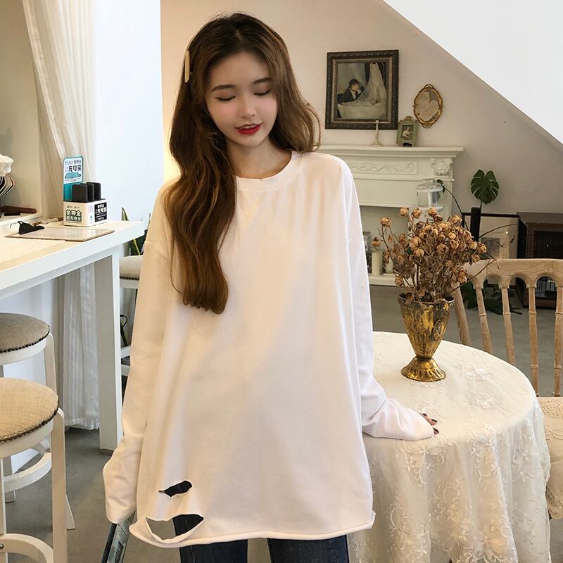 春バージョン2021新作ルーズミドルホールホワイトボトムBF風長袖Tシャツトップ女子学生 ロング スプリング 春物 可可里11076526125