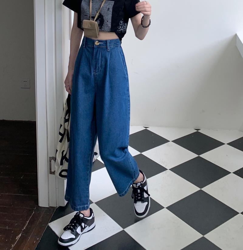 おばあちゃんパンツレディースサマーナインポイントジーンズ2021ニューシンセクション香港スタイルレトロハイウエストワイドレッグパンツ大根パンツ 夏物 可可里7035161011