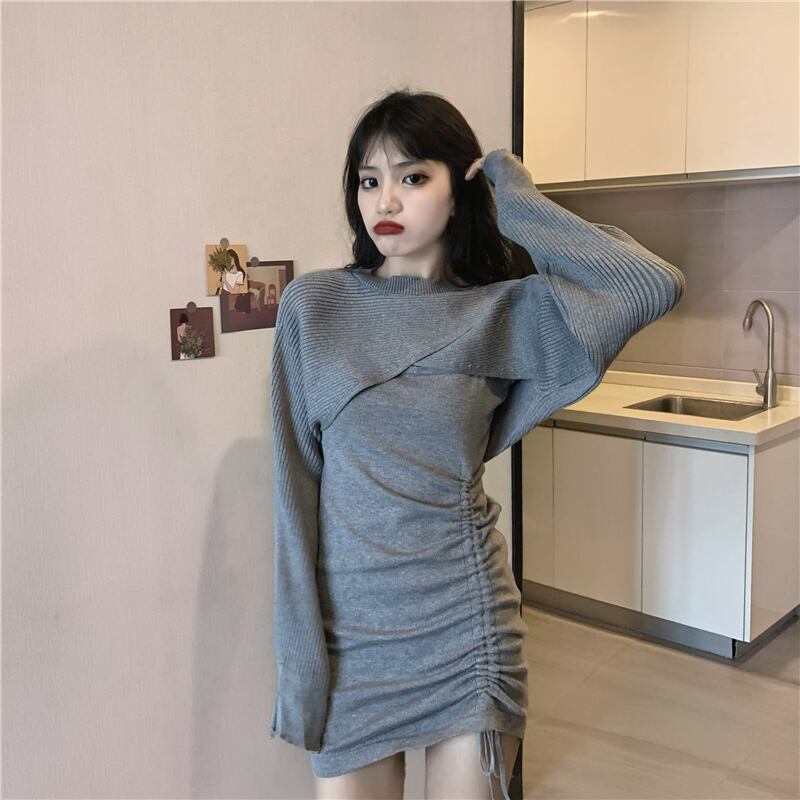春秋バージョン2021新しいスリムスリミング巾着レースプリーツスリングドレスファッションツーピーススーツ女性 スプリング 春物 オータム 秋物 可可里76355011964