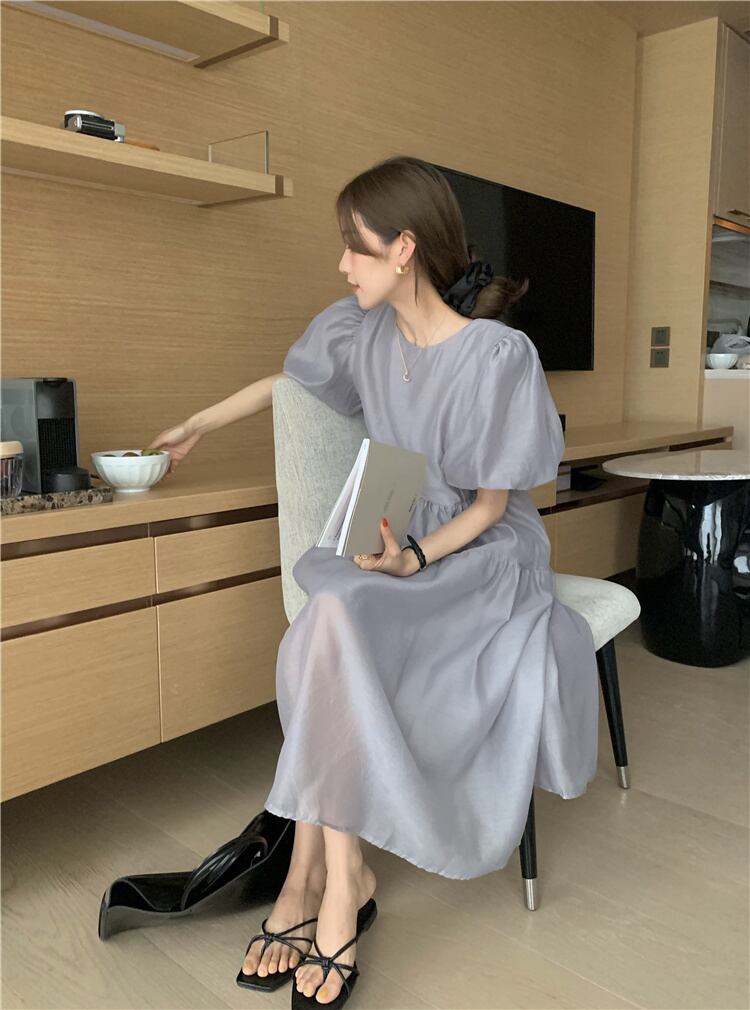 2021年夏レトロフレンチパフスリーブウエストウエストウエストと薄いミドル丈プラティコドン半袖ドレス子供 ショート ハーフスリーブ サマー 夏物 可可里56513749580