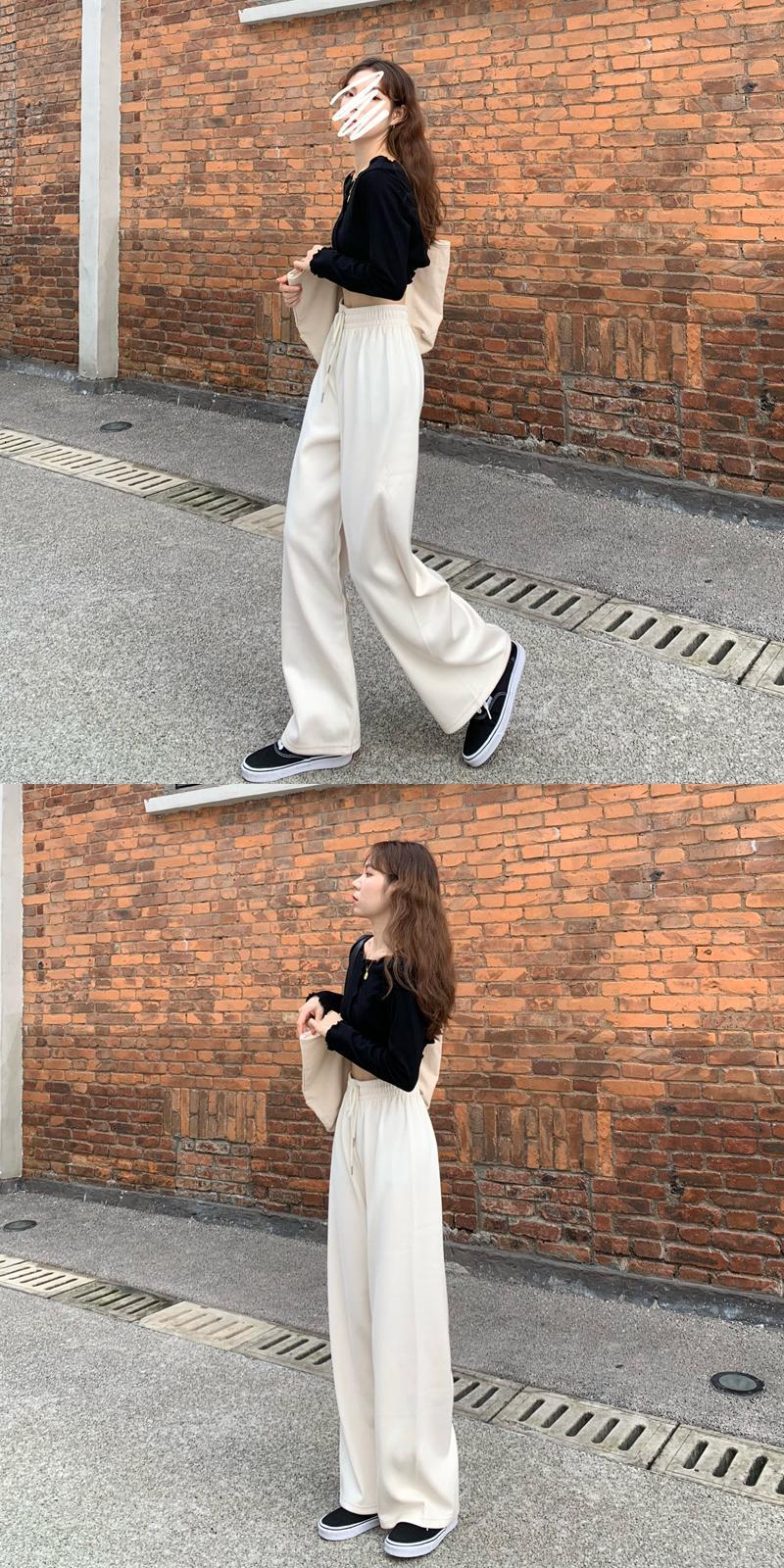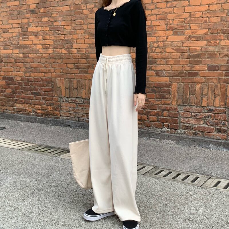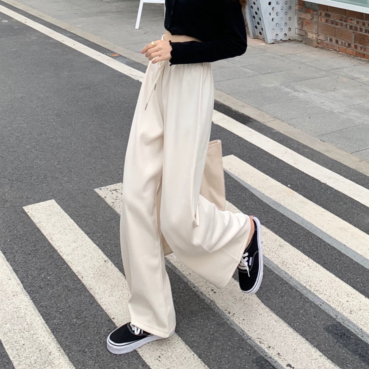 初秋の黒のズボンカジュアルパンツレディースバージョン2021新しいハイウエスト細くて細いワイドレッグパンツレディースパンツ ブラック オータム 秋物 可可里13612335194