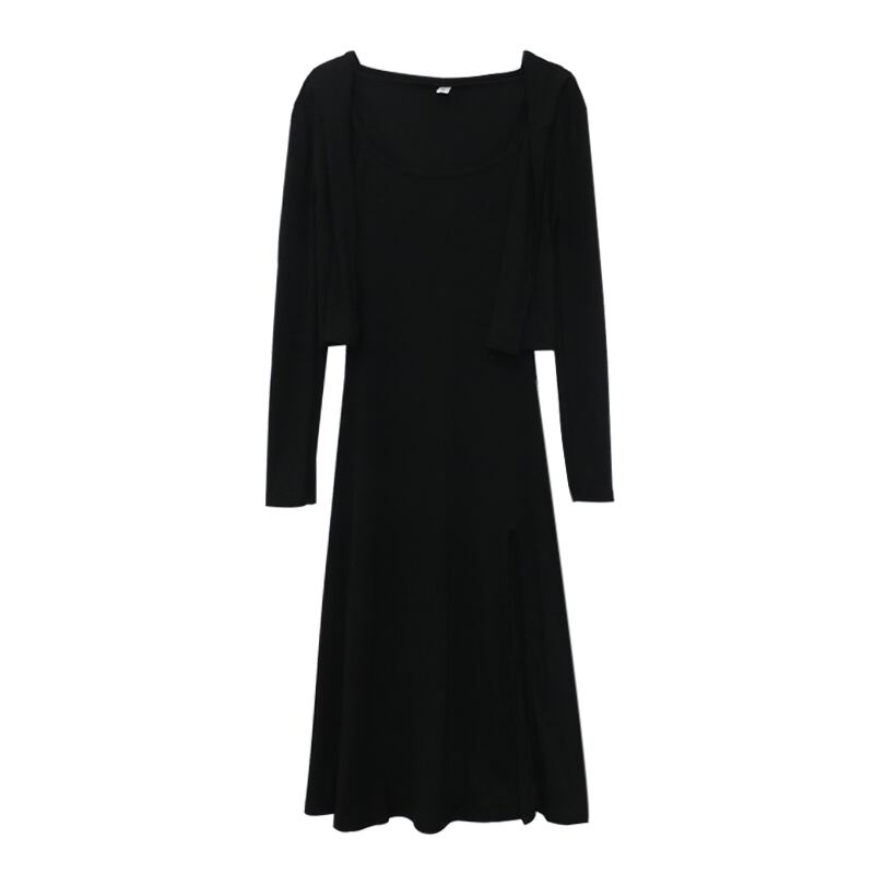 色:グレーのドレス,ブラックサスペンダースカート,ブラックカーディガン,グレーのカーディガン