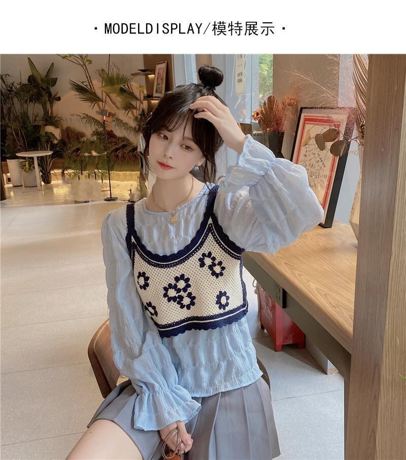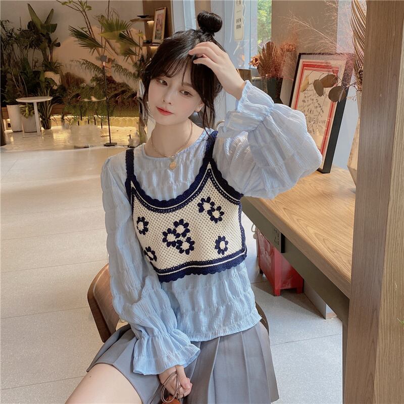 初秋のブラウスレディースツーピーススーツ2021新しい小さなパフスリーブデザインニッチ長袖シックなシャツ ロング オータム 秋物 可可里72396342008