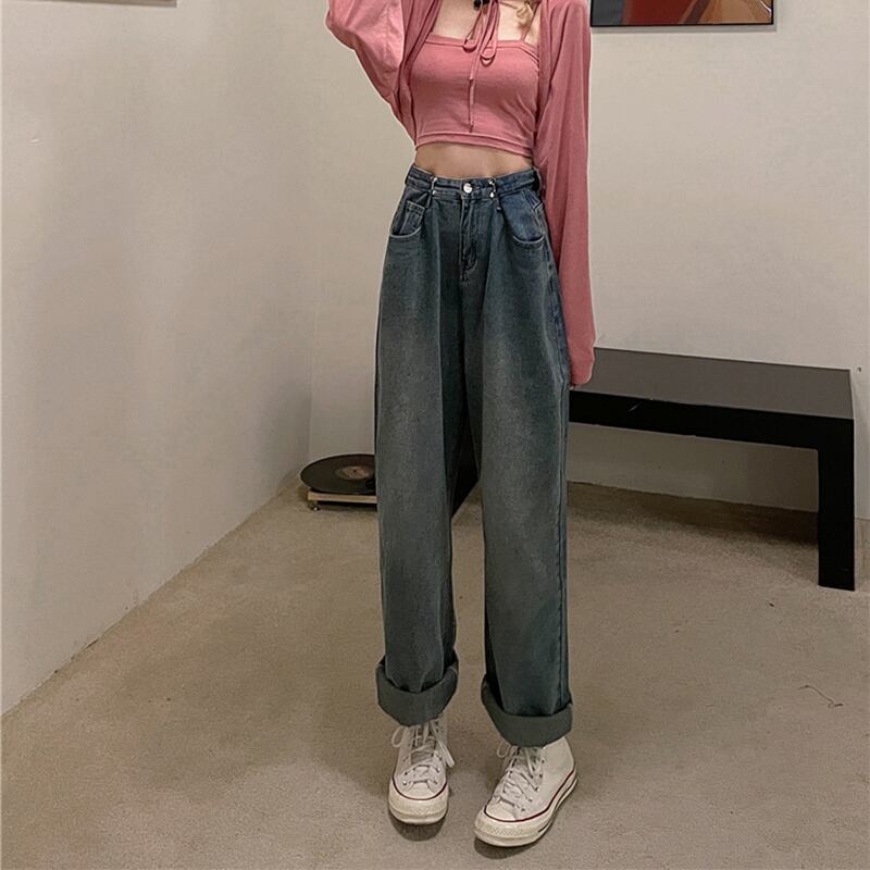 2021年秋新しいハイウエスト痩身時代シックなモップパンツジーンズパンツ女性レトロ香港スタイルパンツトレンド ハイウェスト オータム 秋物 可可里96518638327