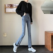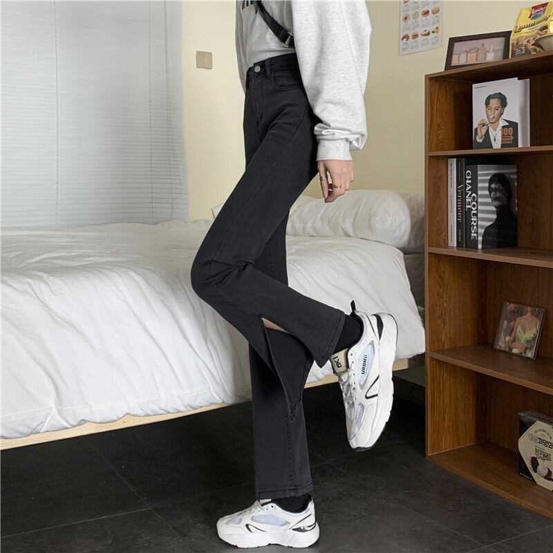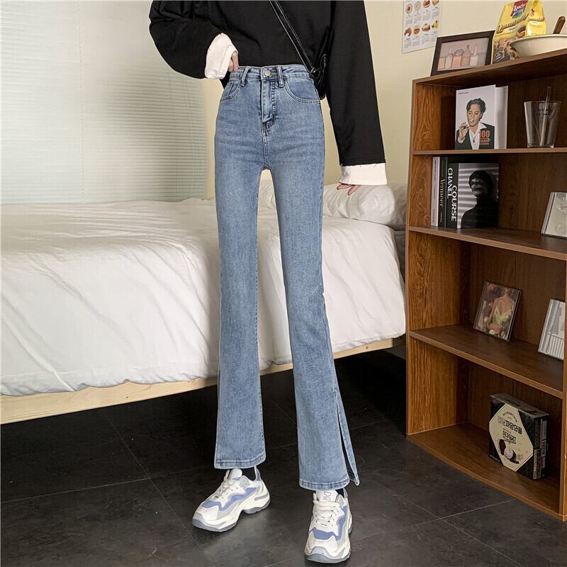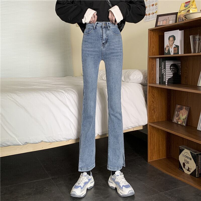 スプリットマイクロフレアジーンズレディース春夏2021年新作ハイウエストデザインセンスタイトパンツインタイド レッド スプリング 春物 サマー 夏物 オータム 秋物 可可里11060341719