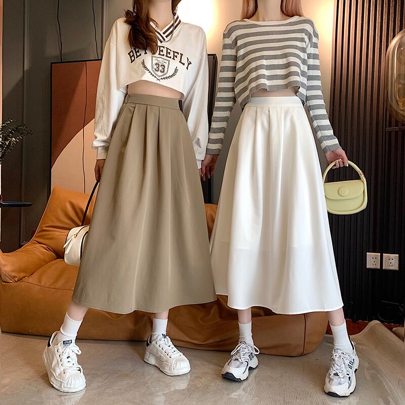 白いハーフレングスのスカート春、秋、冬の女性2021年の新しいハイウエストaラインミドル丈セクションでヒップと薄いヒップスカートの潮をカバー ハイウェスト ホワイト スプリング 春物 オータム 秋物 ウィンター 冬物 可可里89390662826