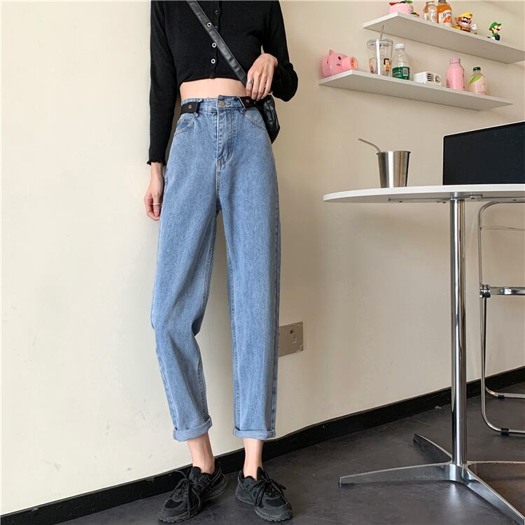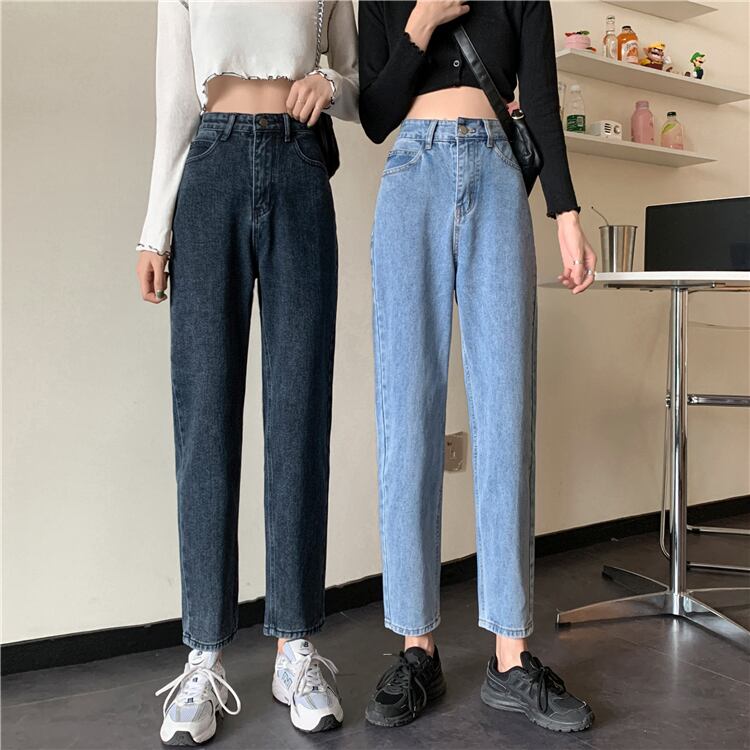 ヒョナスタイルジーンズ2021年秋新作ハイウエストスモールナインポイントパンツストレートパンツレディースパンツトレンディハーレムパンツ オータム 秋物 可可里58106459478