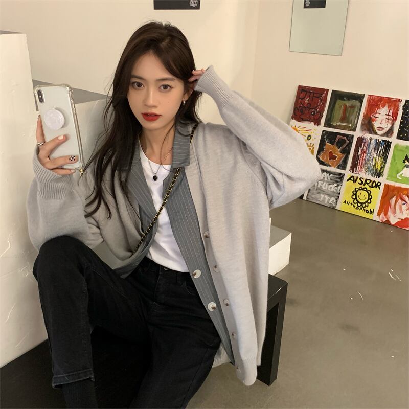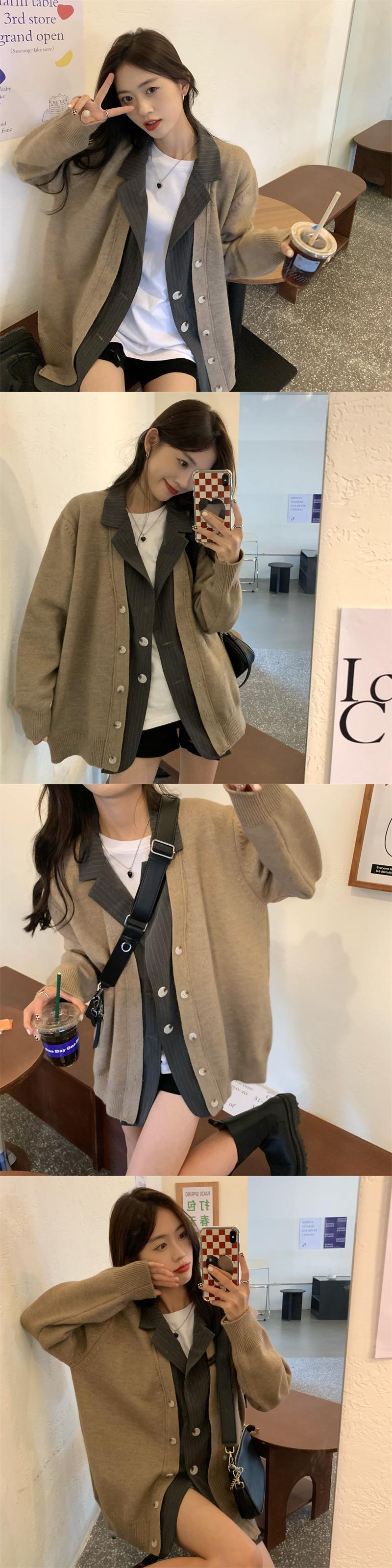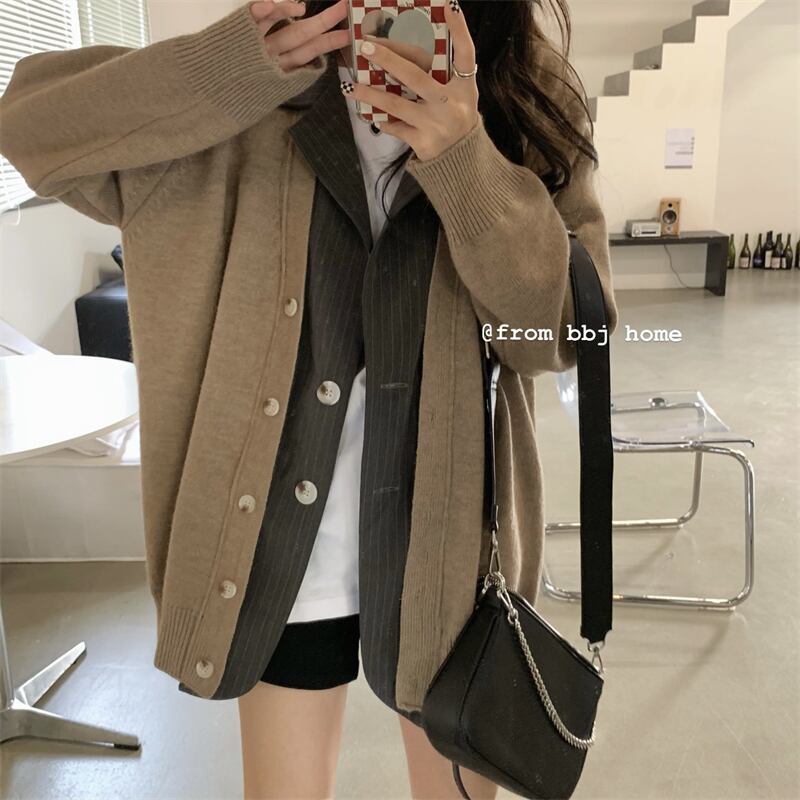シックな秋のセーターコートレディースフェイクツーピースバージョン2021ニューデザインセンスニッチニット長袖トップ ロング オータム 秋物 可可里8913780000