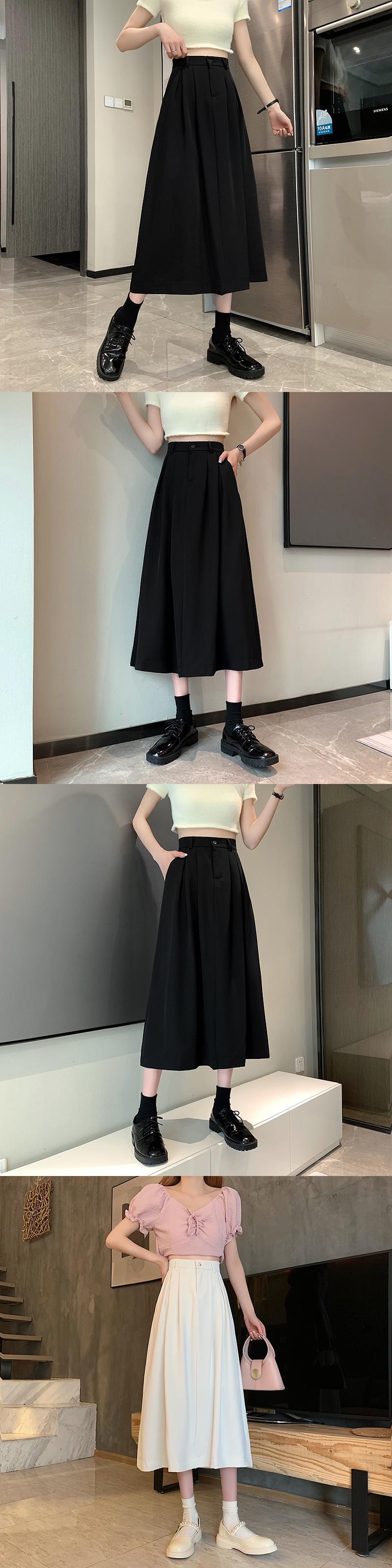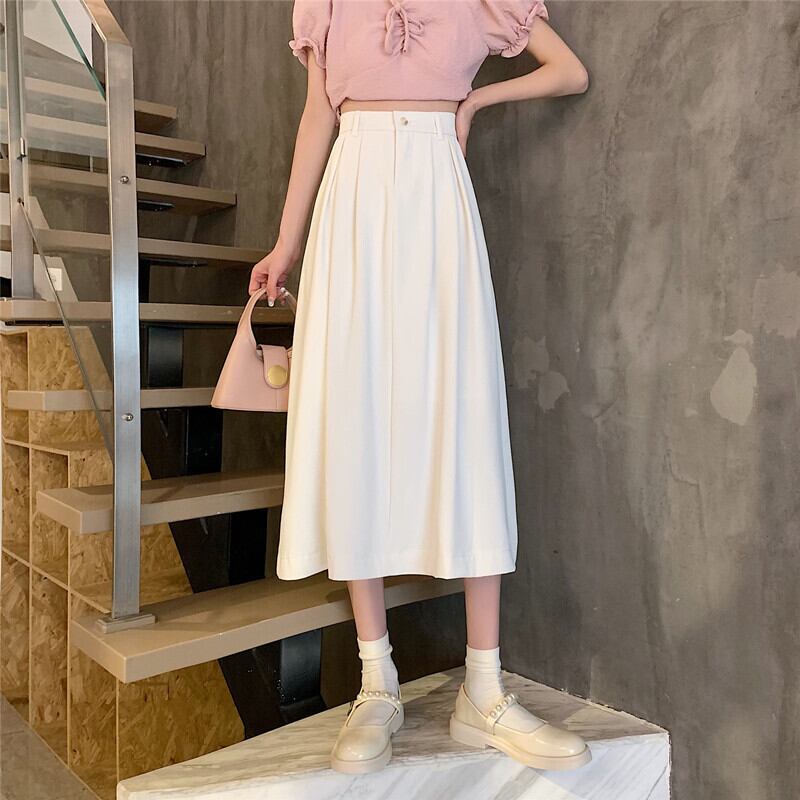 ホワイトスカートレディースサマーバージョン2021ニューハイウエストシンミドル丈シック学生Aラインスカート 夏物 可可里40114504725