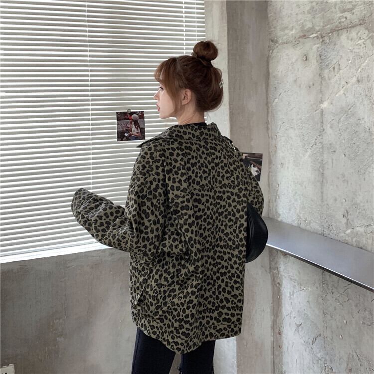 ヒョウ柄ジャケット女子初夏シーズン野球ユニム2021新作インスティッド原宿風ワイルドシンセクション かわいい サマー 夏物 可可里88838096437