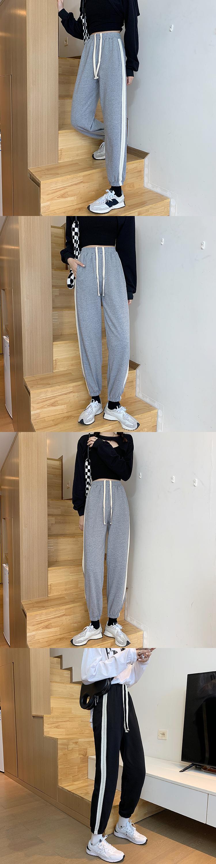 ズボン、サイドストリップ、2021年の新しいハイウエストと薄いネットの赤いスポーツハーレムパンツの女性の春と秋のバージョン ハイウェスト レッド スプリング 春物 オータム 秋物 可可里4598201025