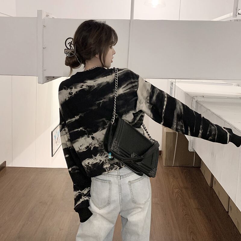 春秋バージョン2021新しい濃い絞り染めルーズショートセクション注意深いマシンキャップレス長袖セータートップ婦人服 ロング スプリング 春物 オータム 秋物 可可里51283767777