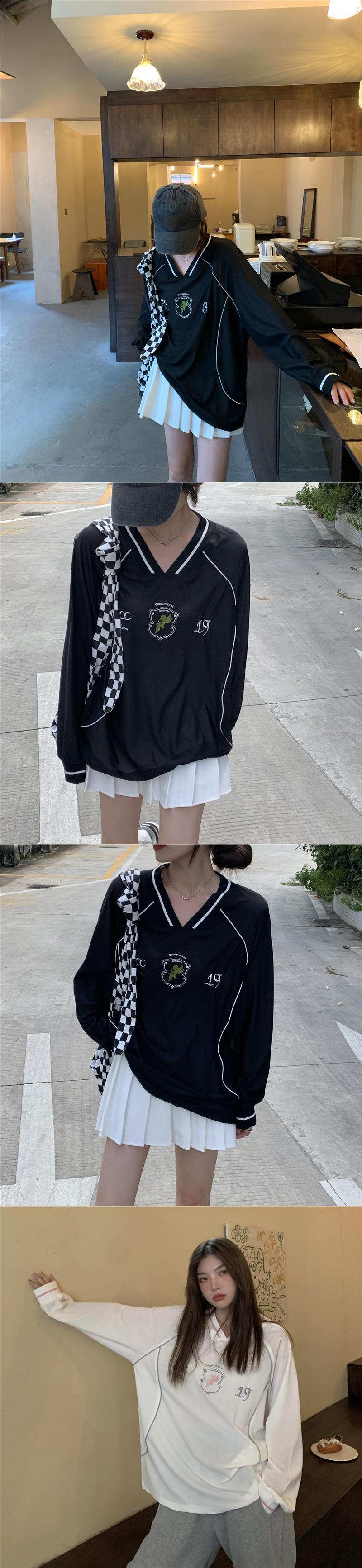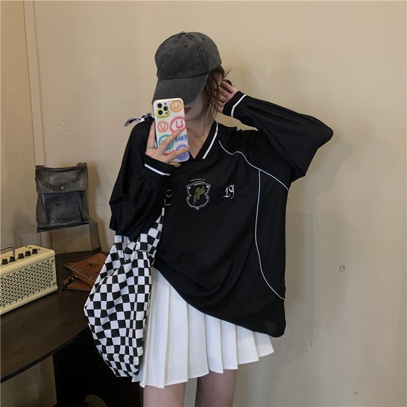 トップ秋2021年新作ルーズデザインセンスニッチVネック長袖気質Tシャツプラスサイズレディースシック ロング 大きめサイズ オータム 秋物 可可里3774957176