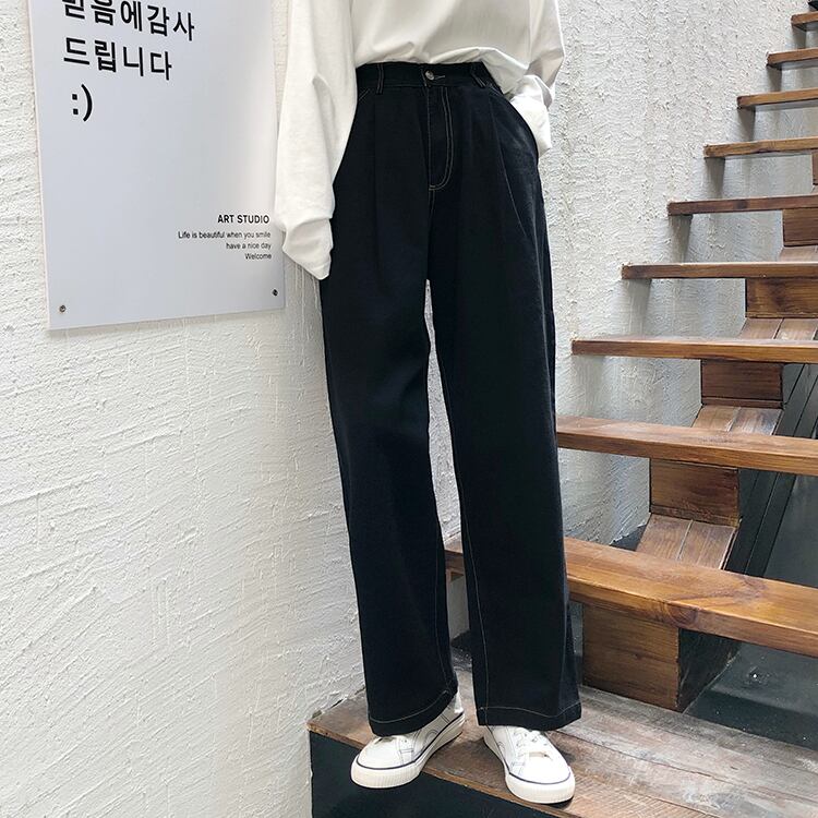 秋のバージョン2021新しいハイウエスト痩身ワイルドワイドレッグパンツファッションルーズジーンズ女性パンツ学生 ハイウェスト オータム 秋物 可可里1252446906