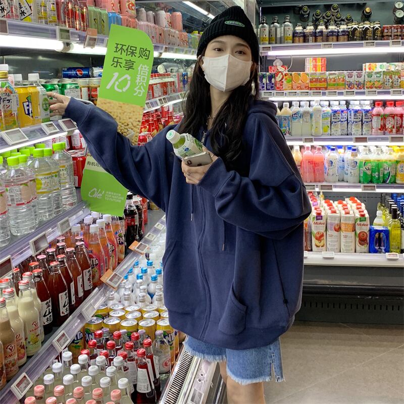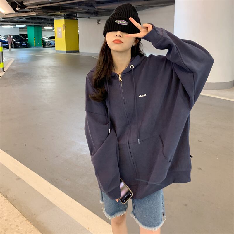 フード付きジッパー長袖セーター2021年秋新塩シリーズ人気インカップル着るルーズジャケット女性爆発 ロング オータム 秋物 可可里80988349682