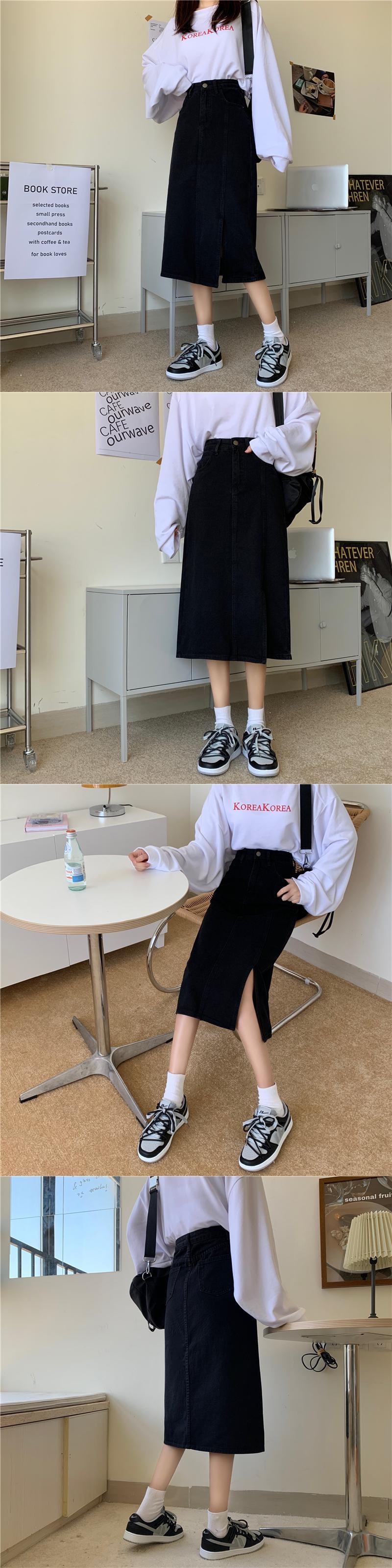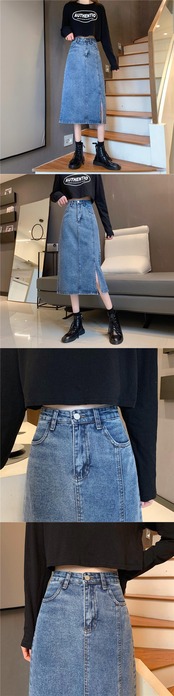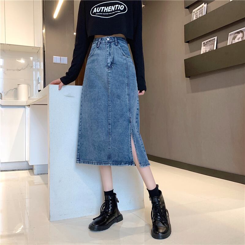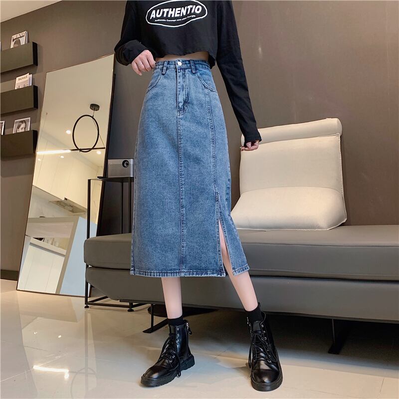 デニムスカートメスサマースモールバージョン2021ニューハイウエストシンスプリットロングAラインスカートスカート ハイウェスト 夏物 可可里10349951532