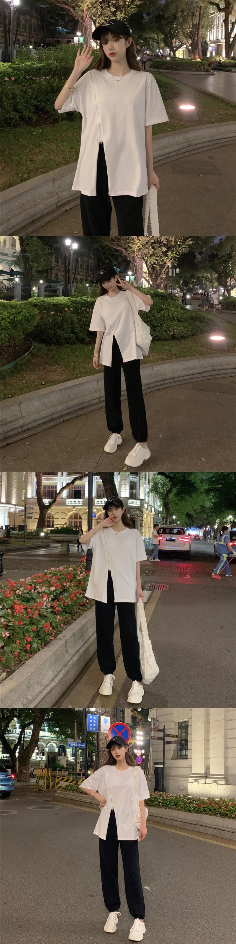 クールソルトスーツ2021年夏潮新デザインセンスルーズジッパースプリットTシャツレディースワイドレッグパンツツーピース サマー 夏物 可可里48308959093